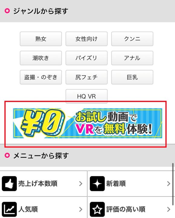 下部にある『お試し動画でVRを無料体験』をタップ。
